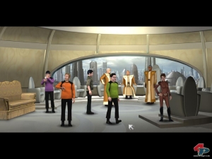 Das Spiel ist in sechs Kapitel aufgeteilt, in denen ihr jeweils eine spezifische Aufgabe lösen müsst. Um das zu schaffen, warten natürlich erst viele kleine Untermissionen auf euer Trio: Jede Menge Dinge finden, eine Brille reparieren, einen zickigen Computer mit Strom versorgen, einer Wache das Fliegen beibringen usw. Ihr kontrolliert nur ein Mitglied des Trios, wobei der Protagonist immer wieder wechselt. Da die Locations ziemlich klein und beschränkt sind, zwingt euch das Programm sehr oft zum Hin- und Herlaufen zwischen zwei Orten. Schon alleine aufgrund des schleichenden Laufstils eures Helden wird dadurch die Spielzeit gestreckt, was aber im Endeffekt auch nichts nützt: Nach spätestens zehn Stunden ist die Erde befreit, die Anwesenden laden zum Gruppenkuscheln und einer Extra-Portion Käse-Sahne.