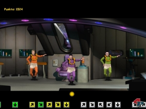 Ein Rhythmus-Game, in dem man mit Timing die korrekte Pfeiltaste drücken muss, während im Hintergrund die Surprise-Besatzung die Hüften schwingt. Ein Simpel-Shooter, in dem man vom Space Taxi aus angreifende Marsianer abwehren muss. Oder ein heiteres Ritter-Weitkatapultieren. Alle Zwischenspielchen sind leicht zu bedienen und sehr kurz, aber eine nette Abwechslung.