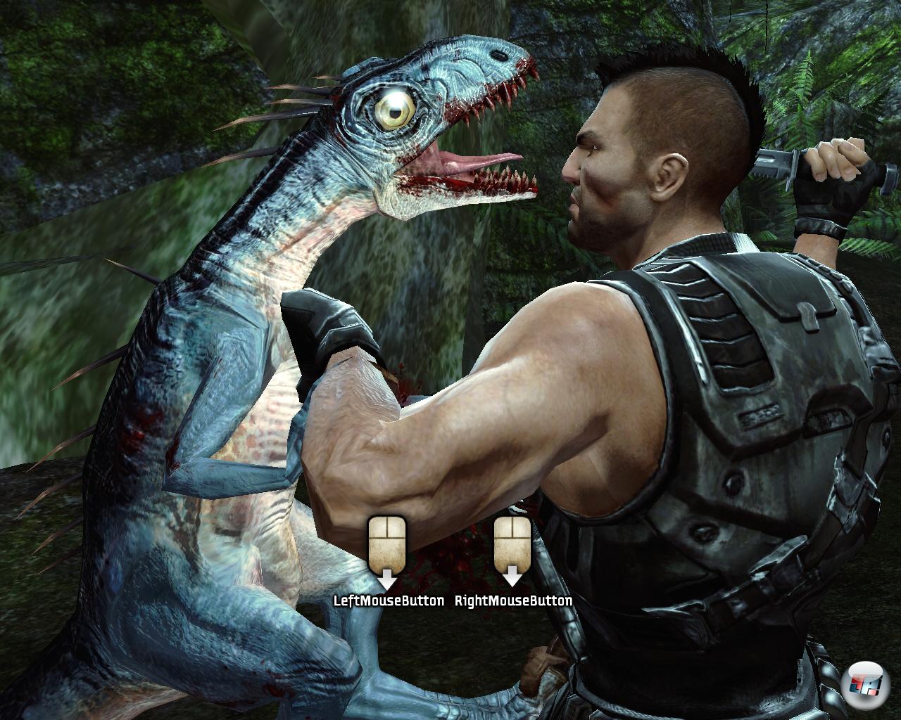 Im Test hätte man ruhig erwähnen können, dass die Dinosaurier zwar durch die Reihe klasse animiert sind, aber absolut null Herausforderung bieten! Warum? Weil man sie mit einem Messerangriff besiegen kann (KEIN SCHERZ!)