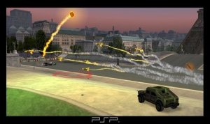 Bis ihr für genug glühendes Metall im letzten Level gesorgt habt, dauert es nicht lang – zumindest gibt es Abwechslung durch die gelegentliche Wahl zwischen zwei unterschiedlichen Arenen. Auch die teils riesigen Schauplätze selbst halten euch eine ganze Weile bei Laune, bis ihr alle versteckten Winkel entdeckt habt: Jede Menge geheime Räume hinter scheinbar stabilen Mauern verbergen allerlei Waffen und Extras, in Paris z.B. rast ihr durch verglaste Wände direkt in den Hausflur. Und wem das nicht reicht, der zündet in Russland Sprengköpfe und jagt sie gen Kreml!