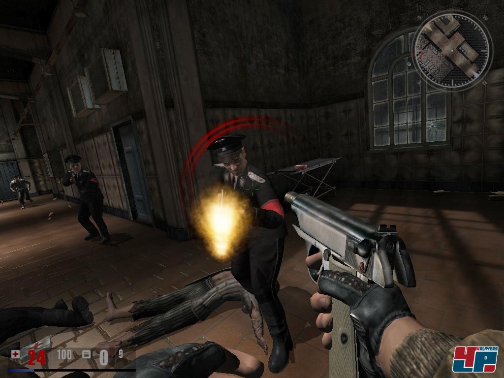 Immerhin verhalten sich die Gegner identisch doof: Da drehen Soldaten mal ihre Runden um euch, laufen an euch vorbei hin und her oder bleiben, höflich wie sie sind, im Türrahmen stehen bzw. rennen an selbigem auf der Stelle.![]()