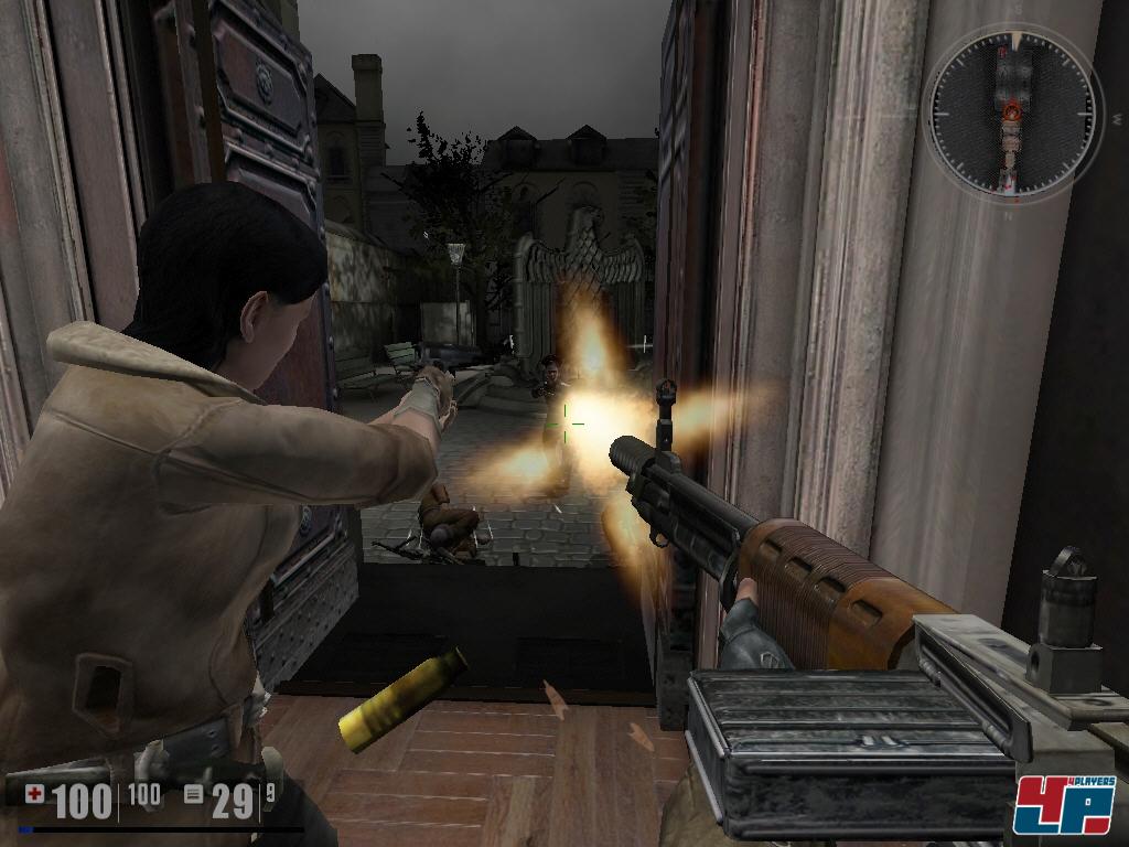 Das ganze Brimborium um die Universal Soldier des Zweiten Weltkriegs spielt im Grunde keine Rolle, deswegen wird die Story auch nur selten durch Texttafeln oder kurze Echtzeit-Zwischensequenzen (in der die vielen Schreibfehler, mäßigen Übersetzungen und nicht zuletzt die erschreckend emotionslose deutsche Sprachausgabe besonders spürbar zur Geltung kommen) weitergeführt. Was soll’s auch, wir sind eh nur zum Ballern hier, die zweieinhalb Mini-Puzzles der Sorte »Bediene den Hebel, damit ein Lastentransporter warum auch immer durch eine Wand bricht« sind bestenfalls die Fingerkuppen entlastende Shooterpausen. Davon werdet ihr allerdings nicht viele haben, denn die Angriffswellen der scheinbar massenhaft geklonten Gegner rollen stetig über euch hinweg, während ihr den Rebellen waffentechnisch unter die Arme greift, Scharfschützennester aushebt, Panzer vermint oder wichtige Dokumente findet. Nicht, dass die KI-Kumpel eine große Hilfe wären: Befehle nehmen sie von einem Strubbelzombie wie euch nicht entgegen, angesichts der lemminggleichen Intelligenzleistungen wäre es aber eigentlich besser.