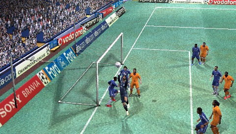 Die Steuerung der Fußballer mit dem Analognippel funktioniert sehr gut, auch die Schüsse und Pässen habt ihr jederzeit gut unter Kontrolle – selbst angeschnittene Bälle sind möglich. Das Steuerkreuz ist dagegen für taktische Befehle reserviert. In Kombination mit der L-Taste legt ihr nicht nur offensive, sondern auch defensive Taktiken wie „Abseitsfalle“ oder eine Raumdeckung fest. Allerdings dürft ihr auch hier keine knallharte Fußballsimulation erwarten, denn dafür ist der flotte Spielablauf noch zu sehr auf den Arcade-Spaß zwischendurch ausgelegt und es fallen verhältnismäßig viele Tore. Dies liegt jedoch auch an den Keepern, die oft sehr früh aus ihrem Kasten rauskommen und so den Stürmern den Weg frei machen. Die Partien laufen durchweg ruckelfrei ab und werden gut inszeniert. Dafür sorgt auch die Kamera, die ihr wie bei der PS2 und dem PC manuell so justieren könnt, bis sie für euch das Geschehen optimal einfängt – ein Luxus, den Xbox 360-Kicker nicht geboten bekommen. Allerdings bekommt die insgesamt gelungene Präsentation kleine Dämpfer: Zwar sehen die Spielermodelle vor allem in den Nahaufnahmen überzeugend aus, doch ist die Zuschauerkulisse dafür erbärmlich. Stellt euch einfach ein TV ohne Empfang vor und ihr bekommt eine Idee davon, wie die Ränge der PSP-Stadien aussehen. Vor allem in Zeitlupen bekommt man fast den Eindruck, als handele es sich bei dem „Flimmer-Schnee“ auf den Tribünen im Hintergrund um einen Grafikfehler. Doch auch im Audiobereich ist nicht alles stadionreif: Die Kommentare, über deren inhaltliche Qualität man sich streiten kann, kommen oft einen ganzen Tick zu spät und wirken daher nicht mehr passend zum Geschehen.