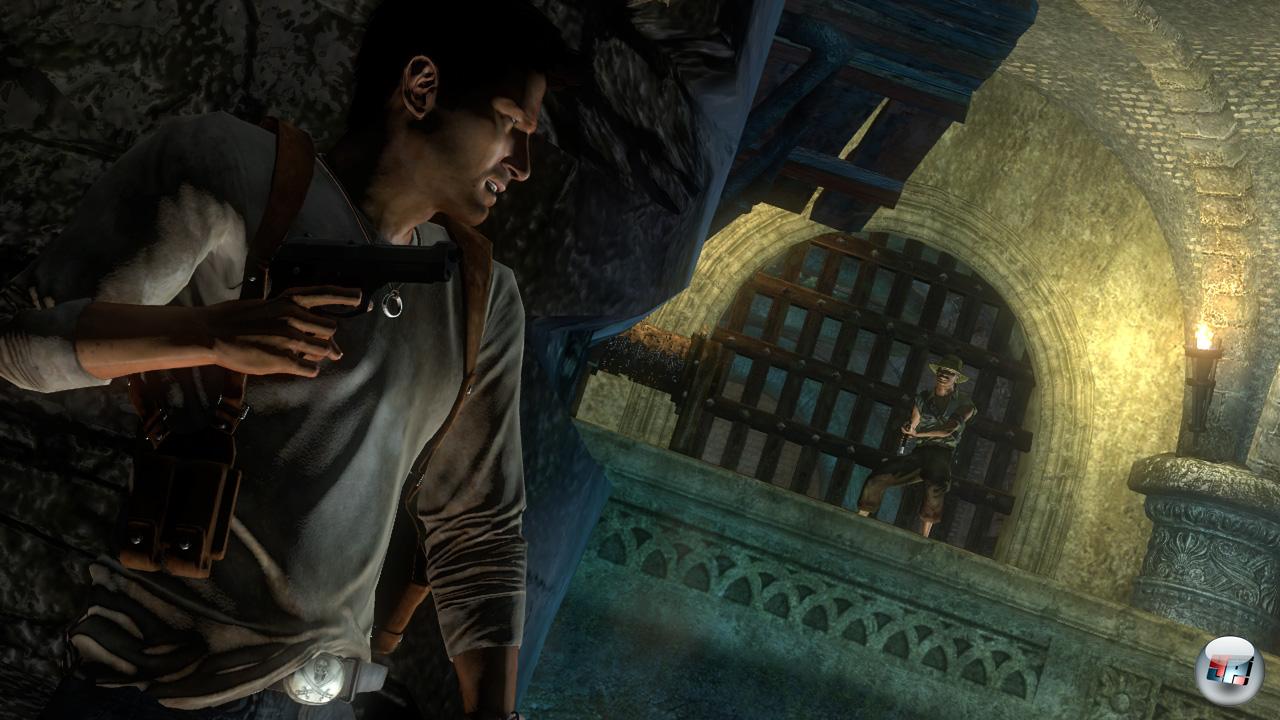 | Drake erkundet verschachtelte Katakomben, in denen diverse Tür- und Druckmechanismen warten. Diese Rätselelemente sorgen für angenehme Abwechslung. |