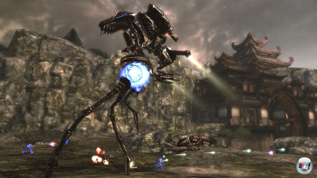 Die schlechte Nachricht ist, dass das Spiel auch in den Nachteilen der PC-Fassung spurgenau folgt. In erster Linie betrifft das die bescheuerte Story in der Kampagne, die nur von der grausamen deutschen Sprachausgabe getoppt wird – ein kleiner Trost ist immerhin, dass die Sprüche im englischen Original auch nicht besser sind. Aber wenigstens cooler klingen, weswegen man dankbar dafür sein muss, dass man per einfacher Umschaltung der Systemsprache dem Spiel seine natürliche Zunge verleihen kann. Wie auch immer: Als langes Tutorial, das den Spieler auf den harten Online-Alltag vorbereitet, erledigt die Kampagne ihren Job sehr gut – und die Story kann man ja als F-Movie-Rahmen mitnehmen. Außerdem sind die Bots mehr als kompetent, und problemlos fähig, den durchschnittlichen Spieler ordentlich aus den futuristischen Latschen zu hauen. Darüber hinaus müssen Käufer der deutschen Fassung (übrigens freigegeben ab 16 Jahren!) natürlich auch mit den bekannten Schnitten leben: Kein Blut, kein Gore weit und breit.