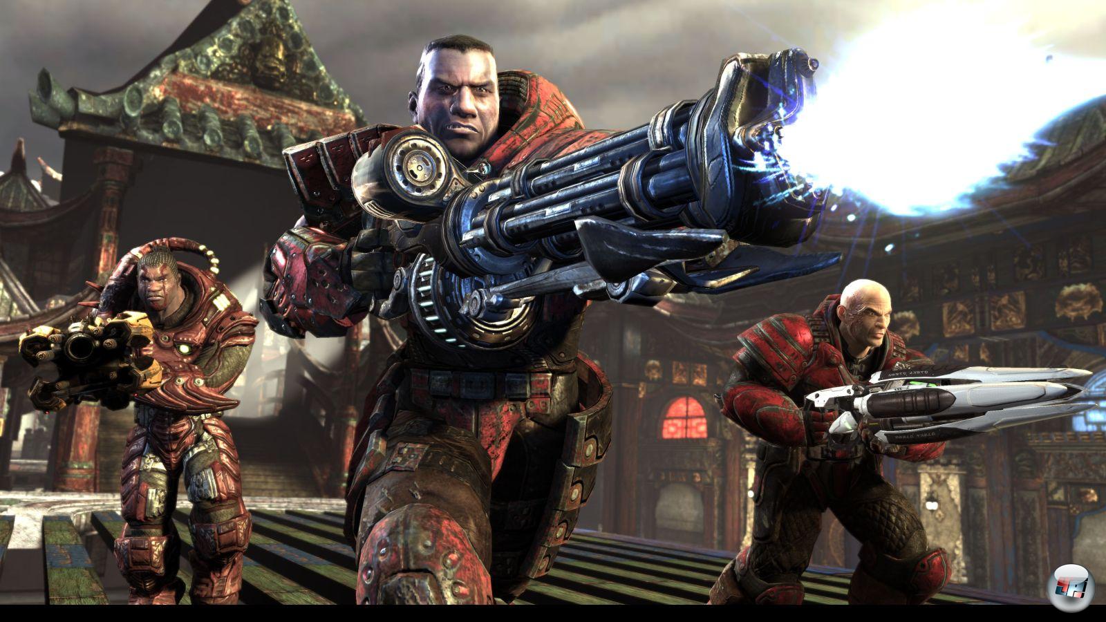 Technisch ist die PS3-Version nach all dem Gejammer und Gezeter um Unreal Engine und PlayStation 3 eine bemerkenswerte Überraschung: Das Spiel sieht fast genauso gut aus wie auf dem PC! Der auffälligste Unterschied ist das üble Texturen poppen zu Rundenbeginn, das zwar den Spielfluss nicht stört, aber ziemlich hässlich aussieht. Epic bietet im Optionsmenü die Möglichkeit, das Spiel auf Festplatte zu installieren, was diesem Problem entgegen wirken sowie den Ladezeiten Feuer unterm Hintern machen soll. Nach fünf Minuten Installation konnte ich als einzige Änderung allerdings gut zwei Gigabyte weniger auf der Platte ausmachen: Die Ladezeiten betragen pro Karte nach wie vor zwischen zehn und 20 Sekunden, die Texturen blubbern nach wie vor ins Bild. Davon abgesehen sind Levelarchitektur, Figurendesign und Effekte nach wie vor eine Augenweide, das