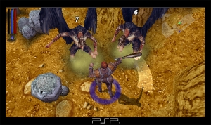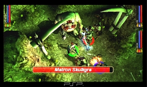 Einer der Bosse versperrt den Weg. Die großen Monster kommen auf der PSP richtig gut rüber.
