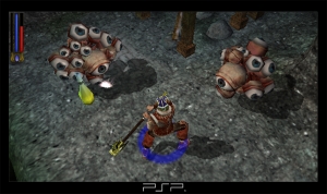 Das fängt bei der Geschichte an und geht bei den Kämpfen weiter, denn das Monsterkloppen geht flott von der Hand und bietet alles, was es in den Vorbildern gibt: Von Nah- und Fernangriffen, Spezialfähigkeiten, Abwehrmanövern bis zu Magie ist alles da. Tatsächlich scheint die kurzweilige Action auf dem Handheld sogar besser aufgehoben als im Gamepad-Format, da sie schnell erlernt und für eine kurze Runde zwischendurch geradezu prädestiniert ist. Falls ihr auf den schnellen Kick aus seid, schlitzt ihr euch in null Komma nichts durch die Dungeons und selbst penible Schatzsucher plündern jeden Keller oder Wald in höchstens zwanzig Minuten. Einen Dämpfer bekommt der Ablauf nur durch die langen Ladezeiten verpasst, was spätestens dann verärgert, wenn im Inventarbildschirm alle Icons von der UMD geholt werden oder es eine geschlagene Minute dauert, sich vom Dungeon in die Stadt und zurück zu teleportieren, nur um zehn Sekunden lang Gegenstände zu verkaufen.