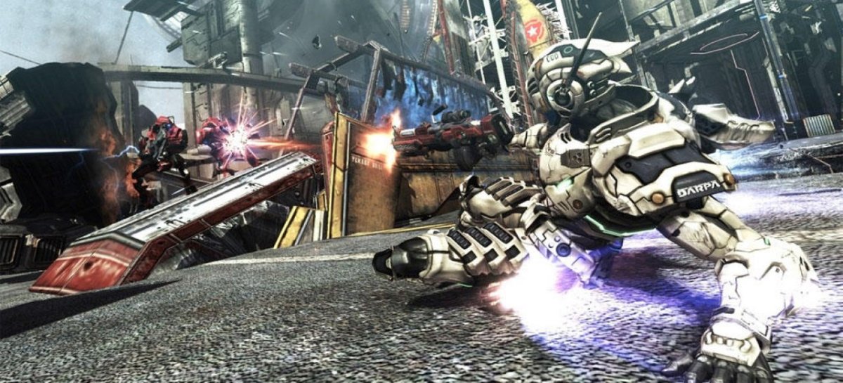 Die Zeitlupe kann nicht nur manuell angeknipst werden, sondern wird im Notfall, wenn man kurz vor dem Exitus steht, auch als eine Art letztes Hilfsmittel automatisch aktiviert. So oder so braucht man dafür (sowie für den Boost und den Nahkampf) eine gefüllte Anzugsenergie-Leiste. Ist diese leer, überhitzt die Kluft und muss ein paar Sekunden lang entlüftet werden – so lange sollte man sich entweder in der Deckung verkriechen oder die Feinde ganz klassisch über Kimme und Korn auseinander nehmen. Das Waffensortiment ist für einen derart ungewöhnlichen Shooter bemerkenswert gewöhnlich: zwei MGs, Schrotgewehr, Raketenwerfer, Scharfschützenknarre, stationäre Geschütze – interessant wirds eigentlich nur mit dem Zielsuchlaser sowie der etwas merkwürdigen LFE-Knarre, deren knisternde Blubbel Gegner von den Beinen werfen. Sowie dadurch, dass man eigentlich immer nur eine Waffe dabei hat – wechselt man zwischen den aktiven, morpht die Knarre mit einem coolen Klappklappklapp-Effekt in die andere. Man darf immer drei Modelle dabei haben (plus die ausgesprochen nützlichen EMP- und Frag-Granaten), kann aber auf dem Schlachtfeld neue Modelle auflesen.