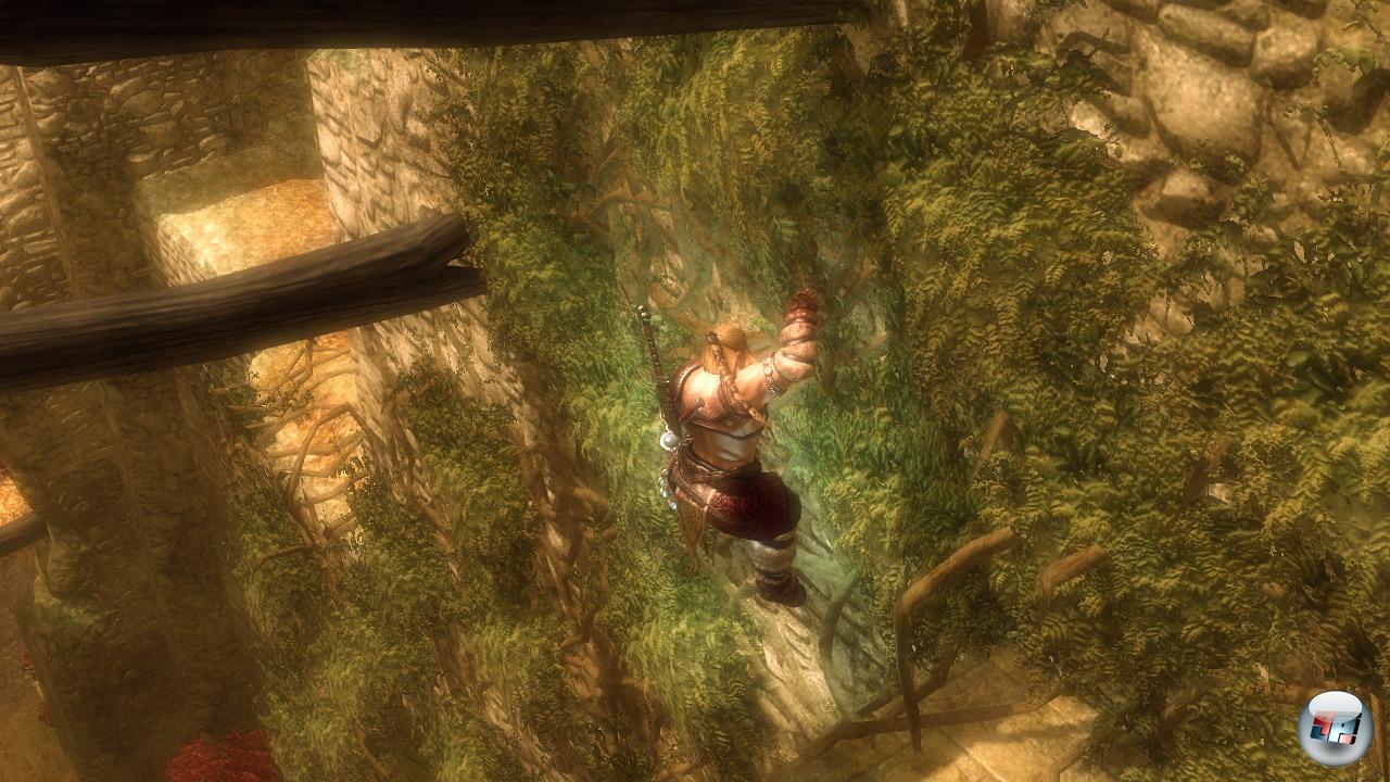 | Die Klettereinlagen kommen zwar nicht an ein Uncharted heran, aber sie sorgen für Abwechslung im Metzelalltag. Ihr müsst in Ruinen z.B. alte Runen suchen, um die Drachen zu beschwören. |
