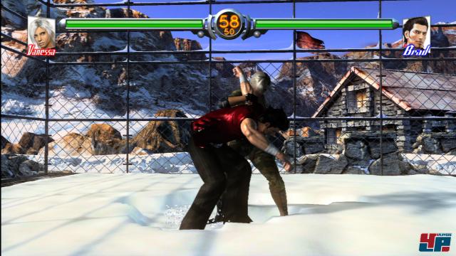 Immerhin hat VF5 nicht in dem Maße mit der Kantenglättung zu kämpfen wie andere Titel. Ja, es gibt Treppchen, aber es hält sich doch in Grenzen – die meisten Horizontalen werden glatt dargestellt. Interaktion mit der Arena ist nur ganz selten möglich: Ihr könnt euch nicht Treppen oder Balkone hinunter werfen oder auf Simse springen, aber euren Gegner mit Schmackes gegen eine Wand schmeißen bis der Putz bröckelt. Auch diese Kollisionen sehen nicht immer so realistisch aus wie sie sein könnten, vor allem wenn es gegen Holz kracht vermisst man auch mal spektakuläre Brüche. Trotzdem: Wer in die Ecke gedrängt wird, ist sehr schnell abgefertigt. Es gibt allerdings pro Kämpfer ein, zwei spektakuläre Wandbewegungen, die euch retten können.
