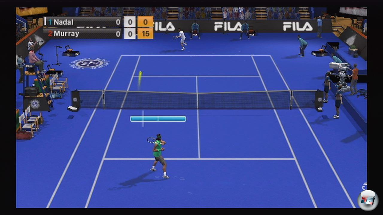 Wenn der Ball kommt, darf die Remote geschwungen werden. Allerdings wirkt diese Variante überaus unnatürlich, denn es erscheint eine Leiste über dem Spieler, in der ein Balken von links nach rechts läuft. Will man nach links spielen, muss man die Remote frühzeitig schwingen, will man nach rechts, muss sie etwas später geschwungen werden. Das funktioniert zwar ansatzweise gut, aber gehört in die Mottenkiste der Motiontechnik, weil es keine natürlichen Bewegungen simuliert, sondern ein Reaktionsspiel verlangt. Schaltet man die Anzeige der Leiste aus, kann man sich wenigstens so hinein steigern, dass die Ballwechsel natürlich wirken.