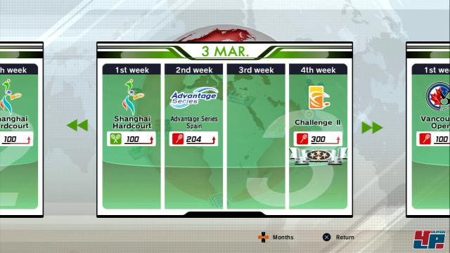 In diversen internationalen Turnieren von Paris bis Melbourne geht es auf den bekannten Belägen von Gras, Hartgummi bis Sand um den Sieg. Hier muss sich euer Profi den KI-Gegnern stellen, um in der Weltrangliste aus den unteren 300 aufzusteigen. Aber bis dahin ist es ein weiter Weg, denn eure Talente befinden sich zunächst alle auf dem mickrigen Level 1: Egal ob Aufschalg, Fußarbeit, Schlag oder Volley. Also müsst ihr erstmal Fleiß in das Training investieren, um euch gezielt zu verbessern: Es gibt insgesamt zwölf Minigames vom Kegeln bis zum Luftballonabschießen oder dem Ausweichen von Riesenbällen.