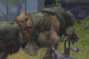 Warum man sein virtuelles Leben nicht bedroht sieht, liegt an den Gegnern, die nur in Massen gefährlich sind. Selbst wenn fünf oder zehn Elektrohyänen in Kombination mit Flammenwerfer-Jaguaren angesprungen kommen, habt ihr kein Problem die Viecher aus dem Verkehr zu ziehen – dies gilt für drei der vier Schwierigkeitsgrade. Die verlorenen Lebenspunkte füllt ihr praktischerweise am nächsten Wegpunkt auf oder sucht nach Heilpaketen bzw. Munition, die überall herumliegen.