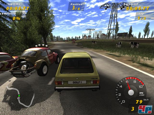 Wer bereits in Xpand Rally über die staubigen Pisten gebrettert ist, wird sich bei GTI Racing schnell heimisch fühlen: Das Gerüst wurde weitgehend übernommen und stellt neben Einzelrennen und Mehrspieler-Veranstaltungen den Karrieremodus in den Mittelpunkt, in dem ihr euch in verschiedenen Rennserien vom Anfänger bis zum Racing-Profi vorarbeitet. Während ihr zu Beginn noch mit gemächlichen Modellen wie einem Käfer über den Asphalt tuckert, schaltet ihr mit der Zeit nicht nur neue Strecken und Herausforderungen frei, sondern erfreut euch auch an weiteren Flitzern wie einem hoch getunten 5er GTI, dem sportlichen W12 Coupe sowie kultigen Bonuswagen wie dem VW-Bus. Insgesamt dürften die mehr als dreißig