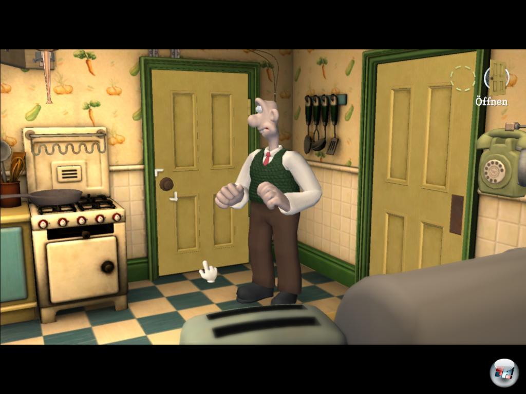 Fresschen: Eier, Toast und Honig sollen es für den verschrobenen Erfinder sein, damit sein Geist auf Touren kommt. Das Spiel wäre kein Adventure, wäre das Anrichten für Gromit ein Leichtes. Einzig der Honig lässt sich noch problemlos zapfen, aber schon der Toast bekommt plötzlich Füße und das Eierbraten gestaltet sich höchst diffizil, weil man dafür eine Apparatur in Gang setzen muss. Mit Improvisationstalent und Köpfchen bekommt es der Hund schließlich hin, muss sich aber von Wallace anhören, warum das so lange gedauert habe. Hat der ne Ahnung, denn das ist ja erst der Beginn eines skurrilen Abenteuers.