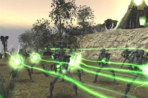 Neu und vollkommen anders im Vergleich zu den sechs Rassen spielen sich die Necrons. Als Ressource gibt es nur Strom und die Eroberung der strategischen Flecken bringt keine „Requisition Points“, sondern erhöht das Einheiten-Limit und beschleunigt die Produktionsgeschwindigkeit – diese Punkte können nur von Arbeiter-Drohnen übernommen werden. Strom bekommen die Necrons durch den „Generator“, dessen Preis pro errichteten Stromerzeuger ansteigt. Alle Einheiten bauen die im schwarzgrünen Borg-Stil aufmarschierenden Roboter im Haupthaus, das später sogar durch die Gegend fliegen kann und neben enormer Feuerkraft auch die Baufunktion behält. Gefallene Necrons bleiben übrigens auf dem Schlachtfeld liegen und gehen trotzdem zu Lasten des Truppenlimits, was den Leichensammler fast zwingend erforderlich macht oder ihr lasst die Gefallenen an der Front durch den Helden wiederauferstehen. Mit dieser Überraschung könnt ihr das Blatt in so manch einer Schlacht noch wenden.
