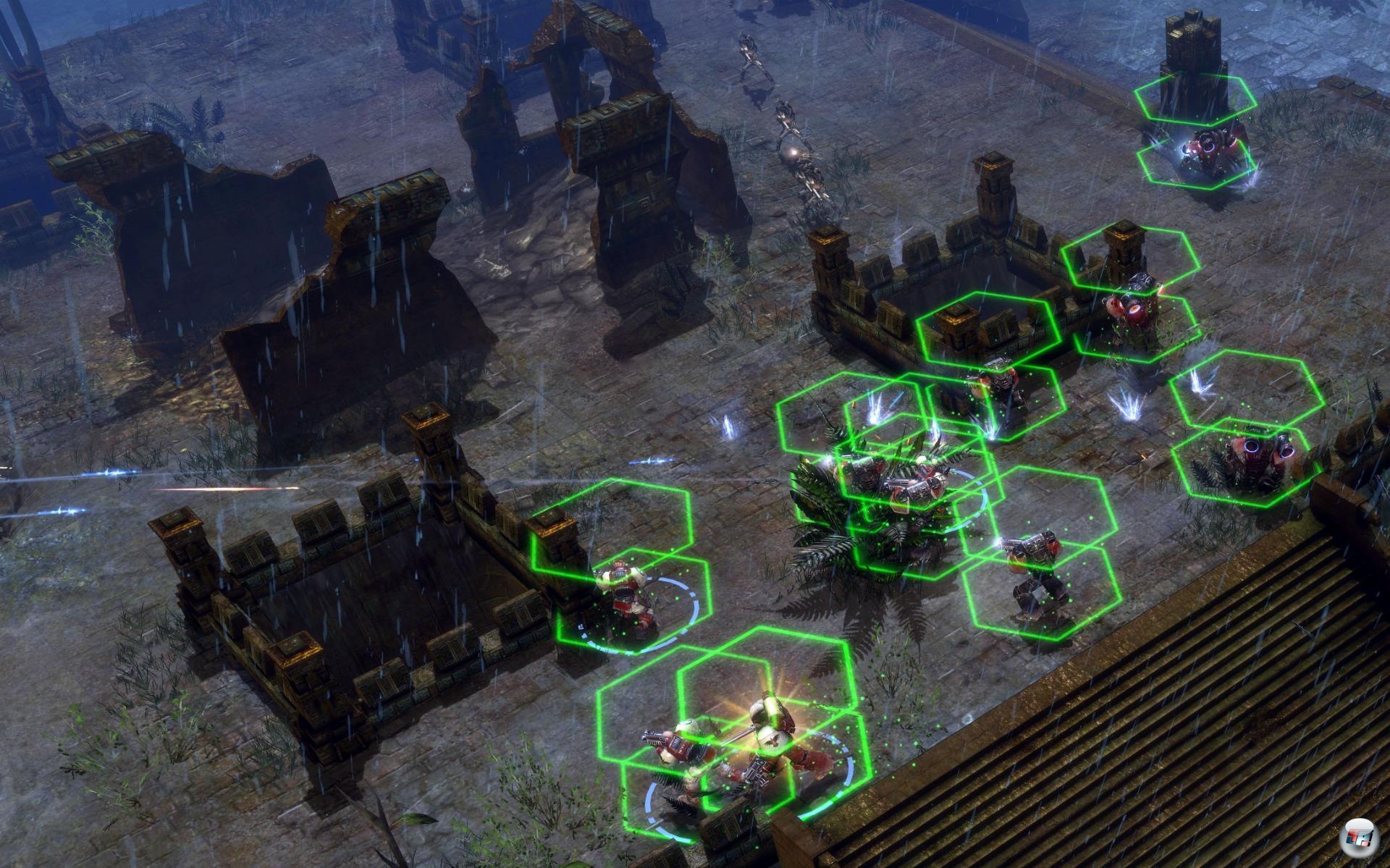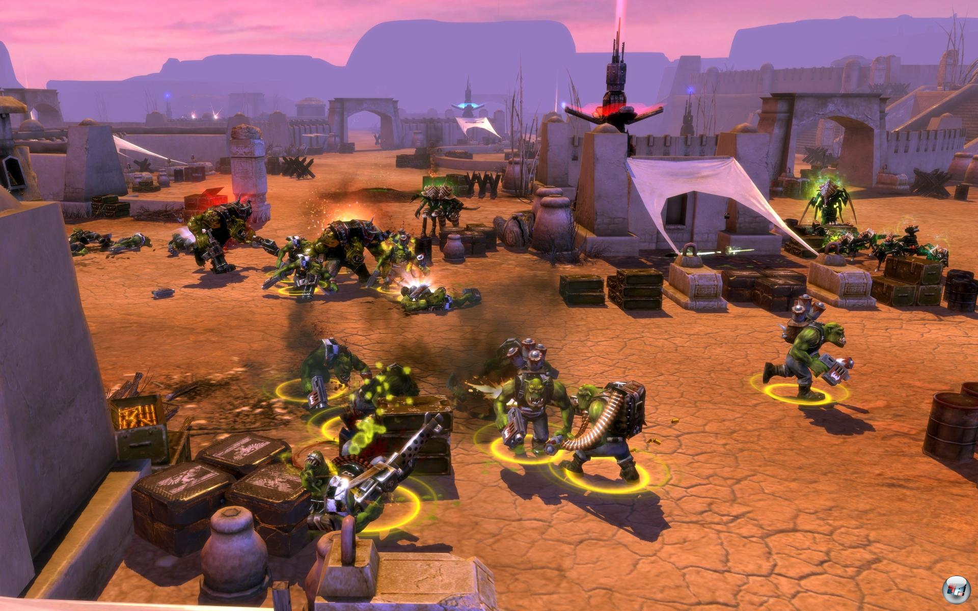 sind leider auch alles, worum sich die modernen Warhammer-Schlachten drehen. Mal stürmt man eine Position, mal verteidigt man eine, dann zieht man weiter. Noch dazu nutzt der Computer das mächtige Sperrfeuer viel zu selten, was die Solo-Gefechte zu sehr einseitigen Auseinandersetzungen macht. Und schließlich unterscheidet sich das Vorgehen von Grünhäuten, Eldar und den „Gigerlingen“ auch kaum – die taktische Herausforderung bleibt stets dieselbe.