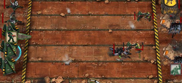 Ja, richtig gelesen: Storm of Vengeance ist die typische Ein-Klick-Line-Defense, die mit Plants vs. Zombies ihren Zenit erreicht hatte. Aber wo die Gartenverteidigung von Pop Cap mit charmantem Artdesign, abwechslungsreichen Spielmodi und krudem Humor aufwarten konnte, herrscht in der fernen Zukunft nicht nur ewiger Krieg, sondern auch furchtbare Langeweile. Auf immer gleichen sterilen Schlachtfeldern kämpfe ich auf der Seite der Dark Angels gegen anstürmende Orkhorden. Mit einem Klick baue ich Produktions- und Versorgungsgebäude, mit einem Klick sammle ich fertig produzierten Karten ein und mit einem Klick sende ich Marines in den Kampf. Gewonnen hat der, der zuerst drei der fünf Linien erobern kann, was selten länger als fünf Minuten dauert. Ein Hauch von Warhammer 40K – Atmosphäre? Fehlanzeige!
