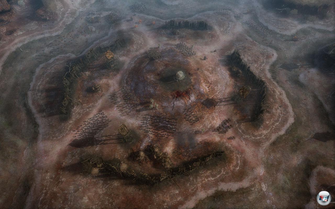 Ein Schlachtfeld aus der Vogelperspektive: Da wimmelt es vor Orks und Goblins. Leider vermisst man die klare Übersicht und Befehlsgewalt, sobald es zur Sache geht…