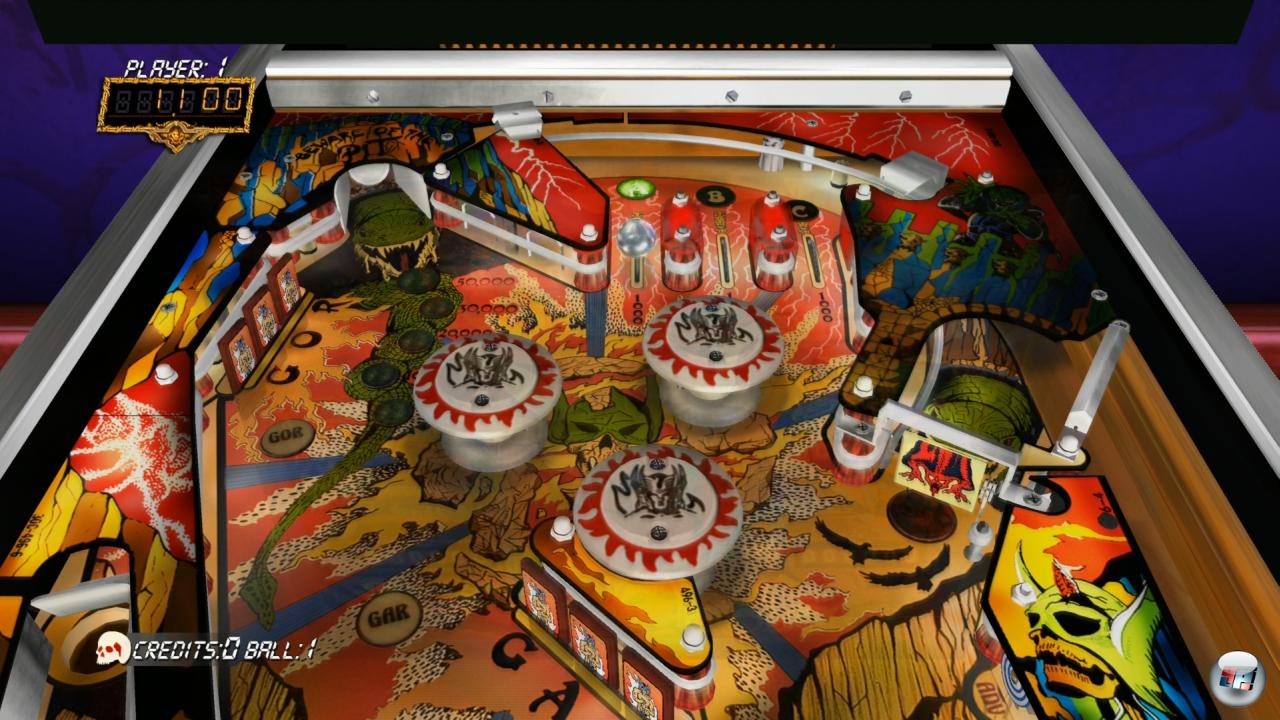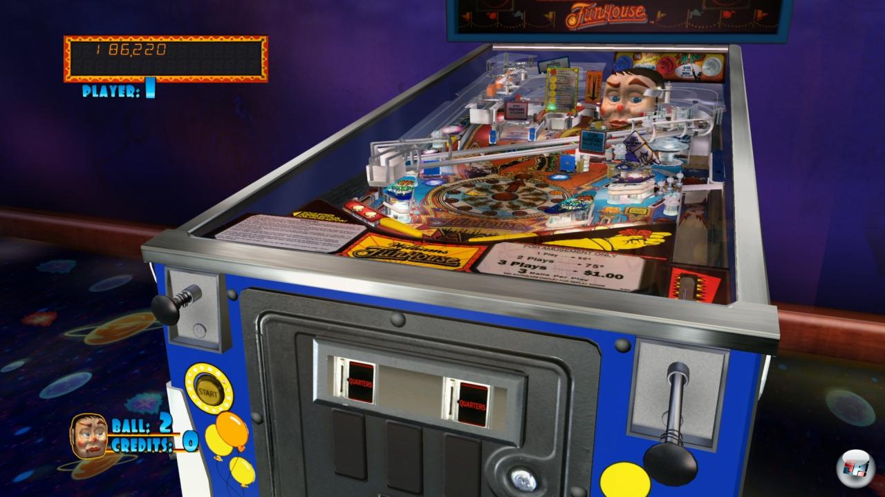 Ein richtig schlechtes Bild gibt nur die Kugel ab, denn unter welchem Lämpchen sie auch hindurchflitzt: Die Umgebung spiegelt sich kein bisschen in ihr. Sogar in der Wii-Fassung von Gottlieb Pinball Classics sah das besser aus. Ein weiterer Rückschritt sind die fünf Kameraperspektiven: Mit einigen konnte ich recht ordentlich spielen, doch keine fängt das Geschehen ideal ein. Eine starre Übersicht des kompletten Tisches wie in Gottlieb Pinball Classics fehlt diesmal. Erfreulich ist dagegen, dass man wieder lokale Turniere für bis zu vier Spieler ausrichten darf oder sich in der Williams-Challenge an mehreren Tischen nacheinander versuchen kann.