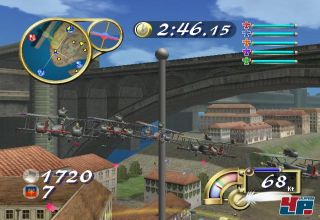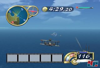 Der Schwierigkeitsgrad ist aufgrund stets im Nacken sitzender Zeitlimits zwar nicht ohne, aber mit der nötigen Ortskenntnis und Flugzeugwahl klappt’s dann meistens doch ohne größere Schwierigkeiten – obwohl die Übersicht aufgrund nur einer verfügbaren Spielansicht nicht immer optimal ist. Die recht simpel gehaltene Flugsteuerung funktioniert jedoch einwandfrei und präsentiert sich angenehm direkt. Durch Heben bzw. Senken der Wiimote lasst ihr euer Flugzeug präzise steigen bzw. sinken und durch seitliches Kippen setzt ihr zu feinfühligen Kurvenflügen an – zusätzliches Gieren ist nicht notwendig. Mit einem Stoß nach vorn zündet ihr den Turbo und mit einem Ruck nach hinten sorgt der Gegenschub für schnelles Abbremsen. [GUI_SPIELLINKS(align=left,SPIELID=8845)] Selbst 180°-Drehungen sind mit einer raschen Seitwärtsbewegung kein Problem.