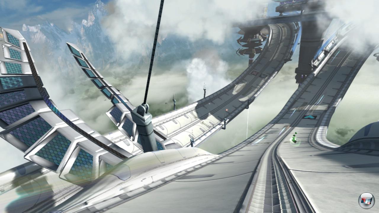 Visueller Höhepunkt sind die Zone-Rennen, bei denen das eigene Schiff unaufhaltsam immer schneller wird. Da brettert das Geschoss nicht nur wie in Pulse mit Überlichtgeschwindigkeit über zweifarbige Variationen der acht Kurse; der leuchtende Neon-Anstrich baut sich auch in regelmäßigen Abständen komplett neu auf. Der Boden sieht zudem so aus, als hätte man einen grafischen Equalizer darin eingelassen – besser kann man Geschwindigkeit, Musik und Stil nicht verbinden! Wer solche Momente für die Ewigkeit festhalten will – und das sollte man – dreht und kippt die Kamera um seinen Gleiter, schaltet diverse Filter zur Bildbearbeitung an und knipst so beeindruckende Aufnahmen seines Zukunftsausflugs.