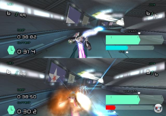 Dass ich auf diesen – oder allen anderen – Kursen aber nicht online antreten darf, weil Sony wohl keinen Sinn darin sah, die Internet-Anbindung der PSP zu übernehmen, ist ein echter Verlust. Weltweite Ranglisten fallen damit ebenfalls weg; die je nach Vorliebe horizontal oder vertikal getrennten Splitscreen-Läufe können dieses Manko kaum ersetzen. Nicht zuletzt müssen beide Spieler mit derselben Gamepad-Belegung fliegen. Die Anzahl der Geräusche reicht im Duell hingegen nicht mehr aus, um alle Ereignisse entsprechend zu unterlegen. Auch diese Versehen sind deutliche Zeichen dafür, wie wenig Mühe sich die Entwickler mit der Umsetzung gegeben haben…