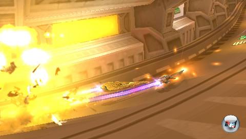 Alt-Neueinsteiger Nummer drei: Etliche Möglichkeiten, die in mindestens einem der Vorgänger bereits vorgestellt wurden. Die meisten davon griff bereits Pure wieder auf oder führte sie erstmalig ein – u.a. die Zone-Rennen, das Maschinengewehr, das Absorbieren der Waffen zum Aufladen der Schildenergie, die Drehung um die eigene Achse oder der „Schritt zur Seite“ für besonders enge Kurven. Was Pulse daraus macht, muss der Blick aufs Detail klären. Nach fünf Stunden dämmerte mir allerdings, dass hier mehr drin steckt als „Pure 2“. Im schlechtesten Fall wäre die Fortsetzung das Äquivalent zu einer randvollen „Best Of Queen“-Doppel-CD… Doch was ist wirklich neu? Wie will der zweite PSP-Auftritt einen Vorgänger überholen, der fast alles richtig machte? Immerhin sahnte dieser zu Recht Spitzenwertungen ein. Dafür sorgten die blitzschnell vorbei rasenden Kulissen, die vielen Rennvarianten und nicht zuletzt das großartige Fluggefühl.