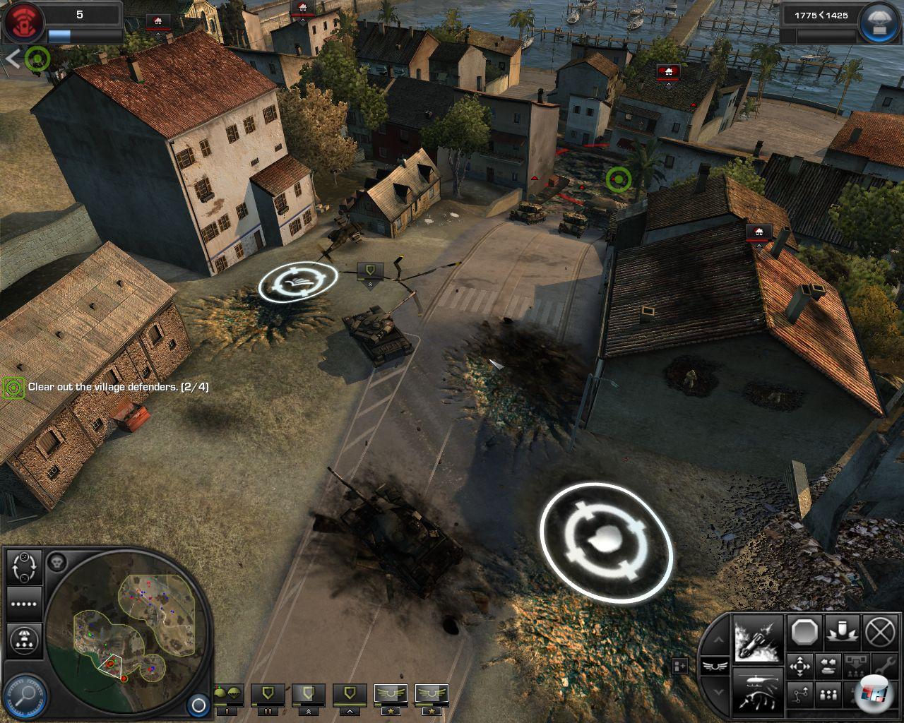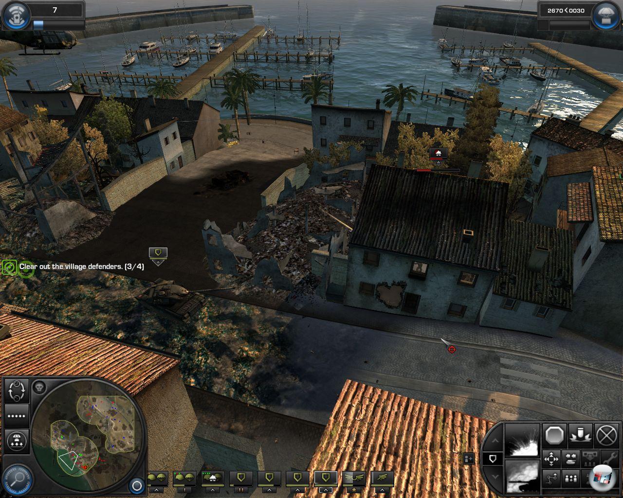 einnehmen, kann den Feind aber nicht mit einer kleinen Flussüberquerung überraschen. Schön ist, dass Amphibienfahrzeuge durchaus zum Einsatz kommen, schade ist, dass auf hoher See bzw. in Häfen nichts passiert – es gibt keine Marine. Trotzdem gibt es genug Abwechslung: Während man Welle um Welle russischer Panzer abwehren muss, öffnet sich vielleicht irgendwo eine zweite Front oder der General verlangt mal eben zwischendurch die Ausschaltung einer Artillerie. Während man gerade ein Atom-U-Boot am Auslaufen gehindert hat, droht irgendwo ein zweites in See zu stechen. Man kann sich nie sicher sein, man kämpft immer gegen eine Übermacht und hat wirklich das Gefühl, ganz tief in der Misere zu sitzen.