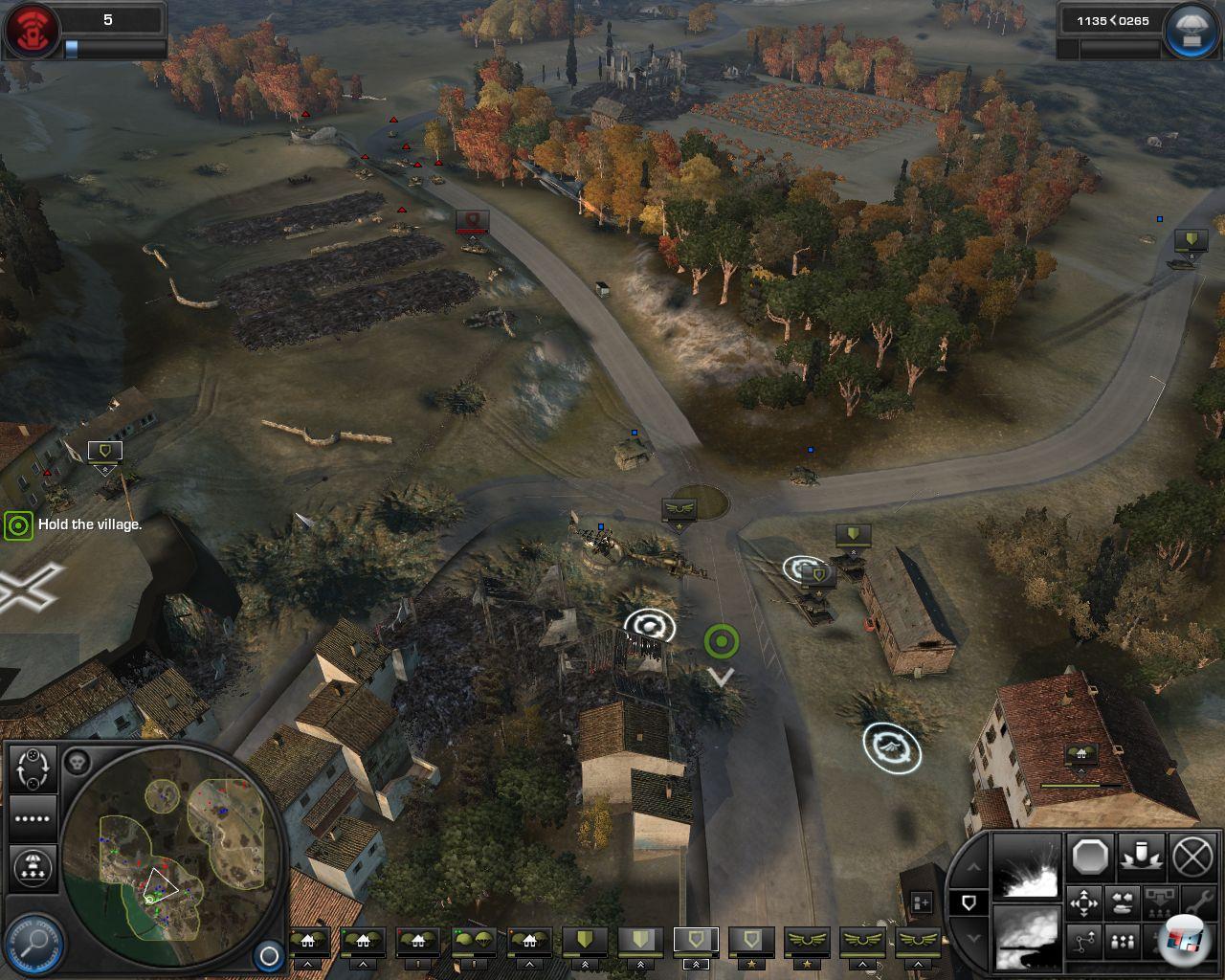 Schade ist allerdings, dass man seine Infanterie nicht auch in Mulden, hinter Mauern, Ruinen oder Hügeln gezielt in Deckung schicken, selber Gräben ziehen oder die Jungs in Boote packen kann. Das wäre eine klasse Ergänzung zum bekannten taktischen Repertoire im Gelände gewesen und hätte auch Umgehungen ermöglicht: In einer Mission muss ich Brücken