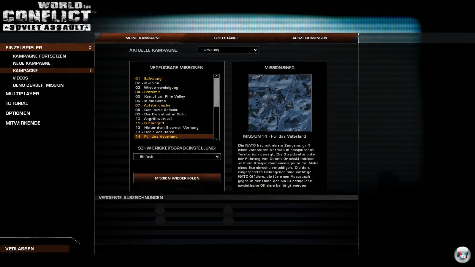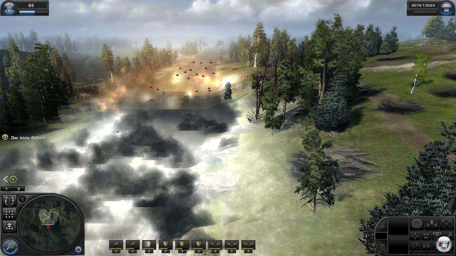 Häufig operiert ihr als Mitglied in einem Truppenverband, während euch ein unbeeinflussbarer Computerspieler mit seinen Aktionen zur Seite steht. Manchmal müsst ihr gemeinsam vorrücken, ihm bei anrückenden Lufteinheiten aus der Patsche helfen oder eine Flussfurt erobern, während er die Flanke hält. So führt man sich als Teil einer größeren Streitkraft und nicht als einsamer Kommandant. Trotzdem waren mir die Missionen nicht fordernd genug und ließen sich praktisch ohne Verluste oder Neustart lösen. Selbst der letzte Einsatz bot trotz gewaltiger Feindesmassen nur wenig Herausforderung – Kenner von World in Conflict sollten die Einsätze gleich auf dem mittleren oder höchsten Schwierigkeitsgrad angehen.