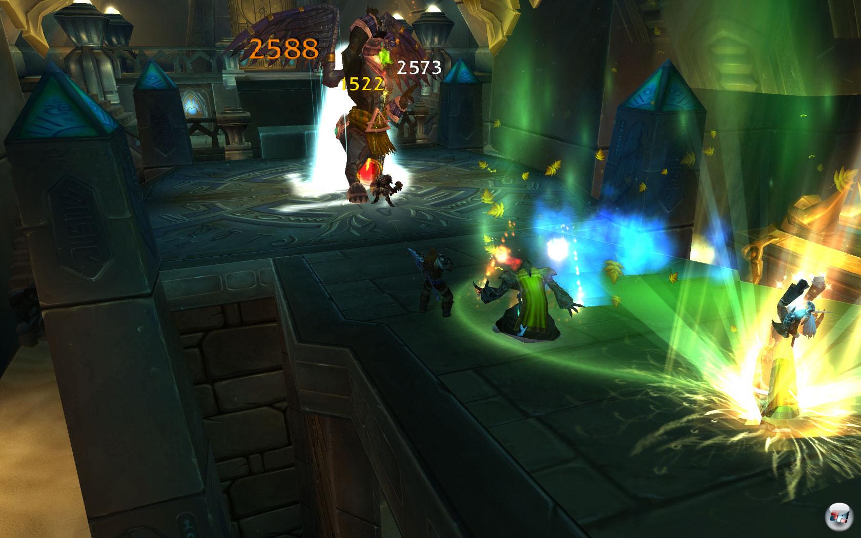 | Die „Hallen des Ursprungs“ sind das größte Fünf-Spieler-Dungeon in Cataclysm. Im ägyptischen Ambiete (mit Titanen-Flair) lauern insgesamt sieben Bossgegner. |