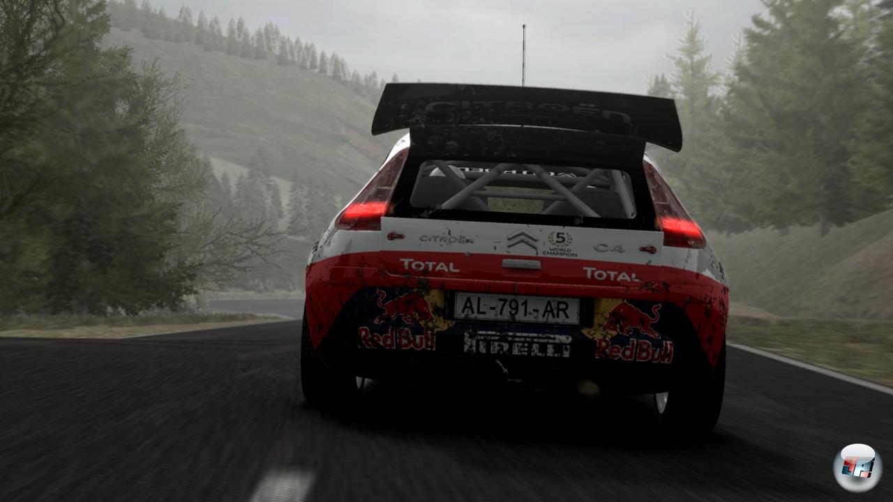 Trotzdem haben die italienischen Strecken-Architekten einen guten Job gemacht und fordern den Fahrer auch auf den fiktiven Kursen mit zahlreichen Engstellen, Haarnadelkurven sowie wechselnden Bodenbelägen, die von Schnee über Schotter bis hin zu Asphaltabschnitten reichen und auch mal nass (bzw. gefroren) sein können. Dynamische Wetterkapriolen sowie Effekte sucht man leider vergebens – es fällt weder ein Regentropfen noch eine Schneeflocke auf die Windschutzscheibe. Ist man in einer der beiden Innenansichten (Cockpit-Perspektive inklusive!) unterwegs, fällt generell auf, dass der Ausblick immer so schön klar ist wie nach einer Fahrt durch die Waschanlage. Egal ob man durch die staubige Wüste oder einen grafisch abstoßenden Bach brettert, bleibt die Windschutzscheibe immer sauber – und das, obwohl der Bolide samt Frontscheibe zumindest in den Replays immer stärker verdreckt. Wie man es besser macht, zeigt Codemasters in Colin McRae: Dirt 2.