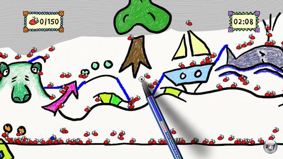 Damit ihnen nichts passiert, will die Linie mittels Cursor und A-Knopf stets schnell genug weiter gezeichnet werden, bis die vorgegebene Menge Insekten den Honigtopf erreicht hat. Zur Belohnung kreischen die erretteten Tierchen aus allen Boxen der 5.1-Anlage. Erschwert wird die Rettungsaktion von der begrenzten Tinte, welche sich aber mittels eines Radierergummis wieder auffüllen lässt. Außerdem lässt sich der Stift mit den Schultertasten beschleunigen. Auch diverse Portale erleichtern einem das Leben.