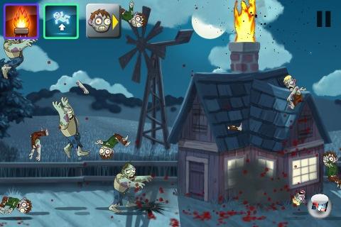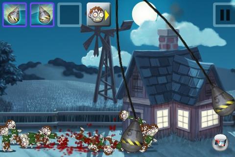 Für Ott-Normalzombie muss man aber nicht gleich den Todesstern rausholen – da reicht auch ein Finger. Denn wie bei Vastle Defense-Spielen üblich, werden Standard-Gegner in erster Linie dadurch vernichtet, dass man sie durch die Gegend schnipst – man platziert einfach seinen Finger auf dem Stöhner und schmeißt ihn in die Lüft. Der harte Boden der Realität hinterlässt meist nicht viel mehr als untote Brocken (was nicht zuletzt dem subtil »Splatter-Engine« genannten Zombie-Zerleg-Mechanismus zu verdanken ist), manche Feinde müssen aber mehrmals herumgeschmissen werden, bevor sie das zerfetzte Handtuch werfen. Manche Gegner sind gegen diese Art der Behandlung allerdings immun – an dieser Stelle kommen wieder die Spezialwaffen ins Spiel. Sowie ein Hauch Taktik, denn anfangs hat man gerade mal zwei Slots für die Wundermittel. Wann man welche Sonderwumme einsetzt, ist also gerade in den späteren der 31 Levels der Kampagne von essenzieller Bedeutung! Jeder erledigte Zombie hinterlässt einen mehr oder weniger wertvollen Stern, den man tunlichst aufsammeln sollte – denn für diese Glitzerklumpen darf man sich zwischen den Missionen neue Waffen zulegen.