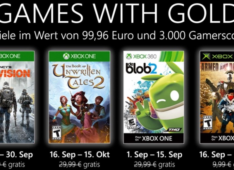 Veröffentlicht inNews Xbox Games with Gold: Im September 2020 u.a. mit The Division und The Book of Unwritten Tales 2 27.08.2020 - 19:45 Uhr11.05.2024 - 02:05 Uhr