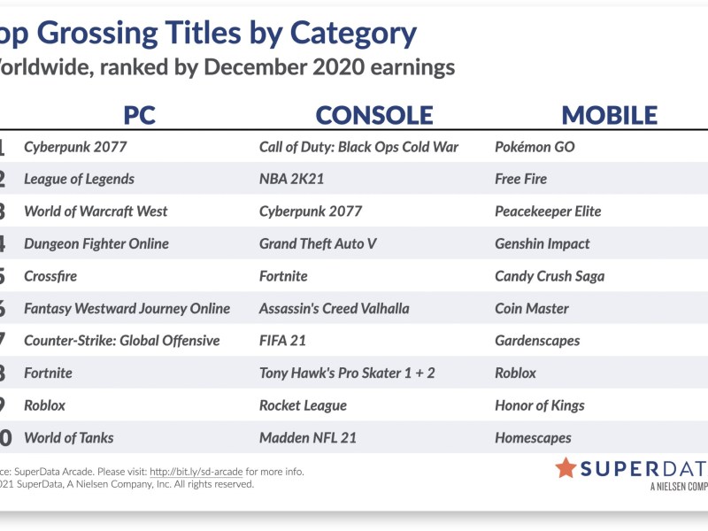 Veröffentlicht inNews Digital-Umsätze weltweit im Dezember 2020: Cyberpunk 2077 bricht Rekorde; große Erfolge für Fortnite, GTA Online & Among Us 25.01.2021 - 14:51 Uhr29.04.2024 - 06:21 Uhr