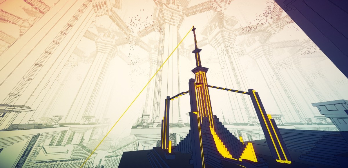 Wenn oben genauso gut unten sein könnte, weil man mit den Gesetzen derSchwerkraft spielt, dann bin ich voll in meinem Element. Das war schonbei Gravity Rush so und fühlt sich hier sehr ähnlich an. Abgesehen davon hat ManifoldGarden mit Sonys berauschendem Abenteuer allerdings nicht viel gemein:Es entpuppte sich auch im Test der PS5-Version eher als monumentales Kunstwerk, das einemerst langsam den Kopf verdreht und ihn dann zum Qualmen bringt.